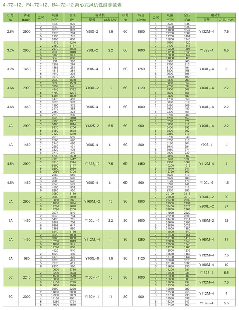 離心風機性能特點:離心風機實質是一種變流量恒壓裝置。當轉速一定時,離心風機的壓力-流量理論曲線應是一條直線.由于內部損失,實際特性曲線是彎曲的。離心風機中所產生的壓力受到進氣溫度或密度變化的較大影響。對一個給定的進氣量,進氣溫度(空氣密度)時產生的壓力.對于一條給定的壓力與流量特性曲線,就有一條功率與流量特性曲線.當鼓風機以恒速運行時,對于一個給定的流量,所需的功率隨進氣溫度的降低而升高。